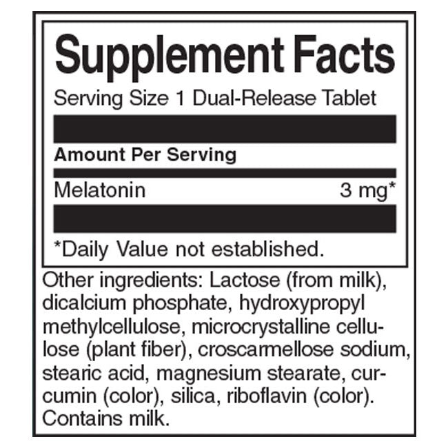 Всяка опаковка съдържа 60 таблетки с последващо освобождаване. Приемайте по 1/4 таблетка вечер с вода, около 20 минути преди сън. Една доза е 1/4 таблетка; препоръчителната дневна доза също е 1/4 таблетка. Съставките включват лактоза (от мляко), дикалциев фосфат, хидроксипропил метилцелулоза, микрокристална целулоза (растителни влакна), стеаринова киселина, кроскармелоза натрий, магнезиев стеарат, силициев диоксид, куркумин (оцветител) и рибофлавин (оцветител). Съдържа мляко. Това подпомага релаксацията и намалява нервното напрежение, като предлага сигурен и спокоен сън.