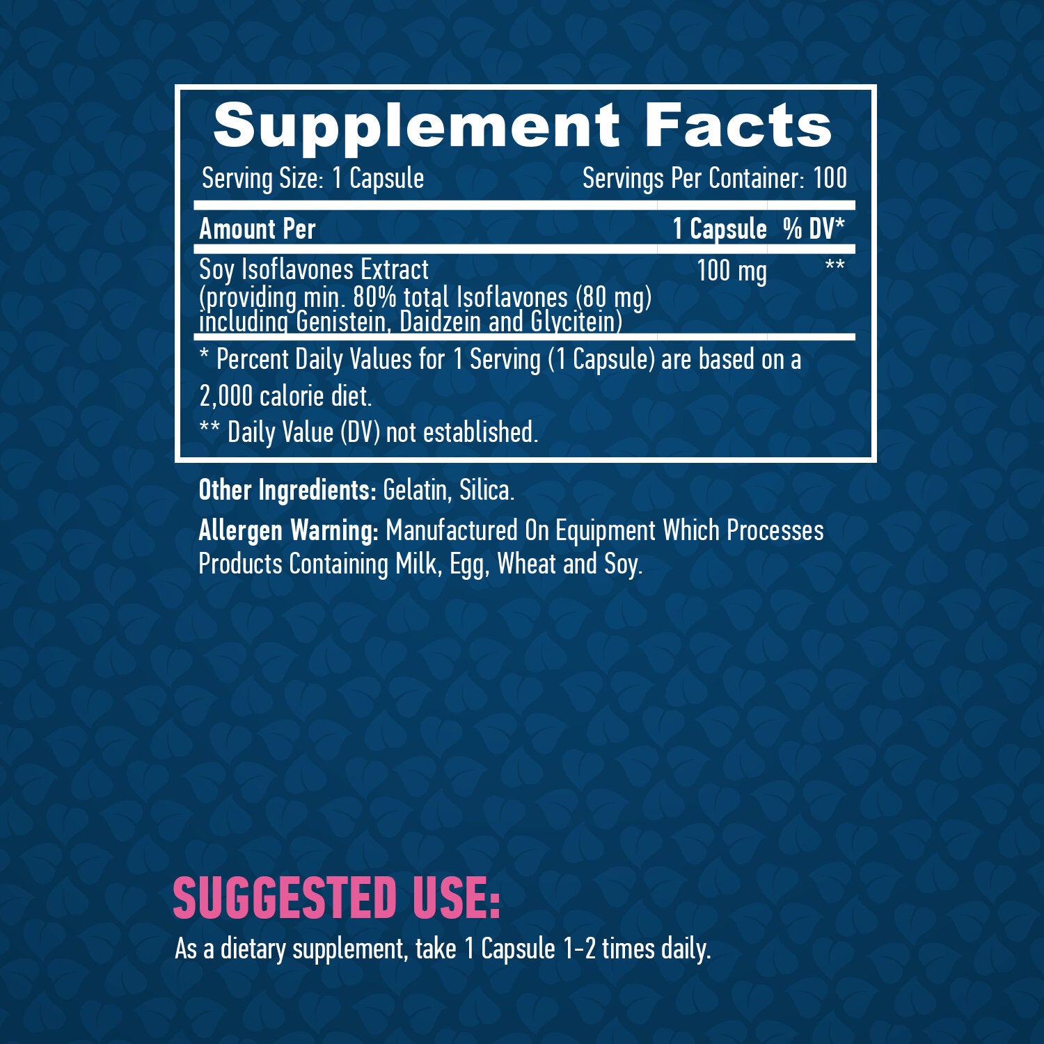 Soy Isoflavones 80% Extract NON-GMO 100mg / 100 Caps.