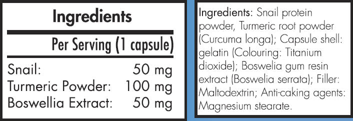Helix Original съдържа ключовите съставки алантоин, куркума и босвелия, които работят синергично за намаляване на възпалението и поддържане на здрава ставна функция. Екстрактът от охлюв е известен с високото съдържание на алантоин, който подпомага регенерацията на тъканите, облекчава дискомфорта и стимулира възстановяването. Куркумата допринася за противовъзпалителни ефекти, а босвелия допълва формулата с допълнително облекчение и грижа за ставите.