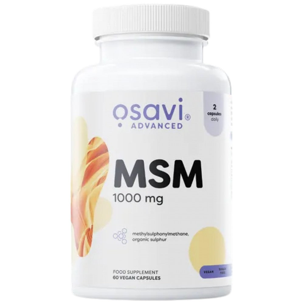 MSM е естествено срещащо се органично сярно съединение, което е важен компонент на протеините и необходим за синтеза на кератин и колаген. Osavi MSM 1000 mg е формула с висока усвоемост и чист етикет – без излишни добавки. Продуктът е подходящ за вегетарианци и вегани, без захар, без глутен, без лактоза, без соя и без ГМО; опаковката BioPET съдържа 30% пластмаса от захарна тръстика.