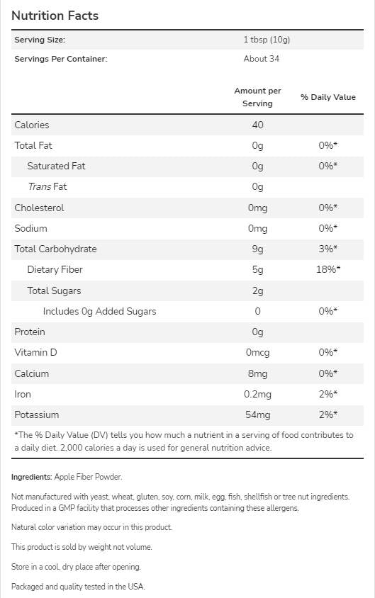 Ябълковият фибър е изключително полезен продукт, който осигурява множество ползи за здравето. Той е богат на разтворими и неразтворими фибри, които подпомагат храносмилателната система и спомагат за по-доброто усвояване на хранителните вещества. Консумацията на ябълков фибър може да помогне за регулиране на нивата на кръвната захар и холестерола, като по този начин намалява риска от различни сърдечно-съдови заболявания. Научни изследвания показват, че редовният прием на фибри може да подобри общото здравословно състояние на организма и да намали риска от диабет тип 2.