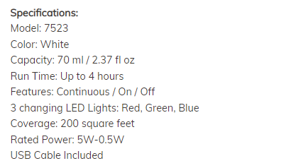 NOW® Solutions Ultrasonic USB Oil Diffuser обединява ароматерапията със съвременни технологични иновации, за да създаде компактен дифузер, който се включва в USB порт. Технологията използва ултразвукови вибрации за създаване на фин мъглен поток без нагряване, което запазва естествените свойства на етеричните масла и осигурява чиста, охлажда пара за безопасно използване. Устройството е без BPA, изключително тихо и лесно за почистване; работи до 4 часа с резервоар от 70 мл и включен 40-инчов USB кабел. Продуктът идва с 1 година гаранция. Възползвайте се от променящите се LED светлини за настроение и безопасното автоматично изключване при изчерпване на водата.