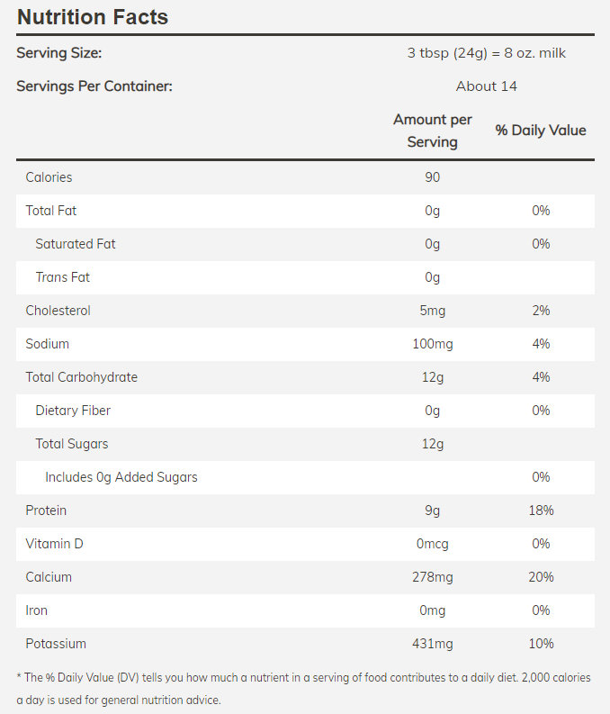 🥛 Organic Dry Milk With Protein & Calcium - NON FAT - 341 g