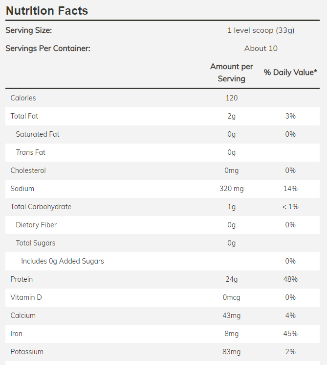 • По една доза (33 g) с 250–300 ml вода, сок или напитка по избор.