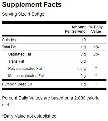 NOW Foods Pumpkin Seed Oil 1000 mg e масло от семената на тиква което съдържа есенциални мастни киселини (EFA) и фитостероли. Продуктът е студено пресовано без употребата на разтворители. Използвани са само висококачествените сортове тиквени семена (без ГМО).
