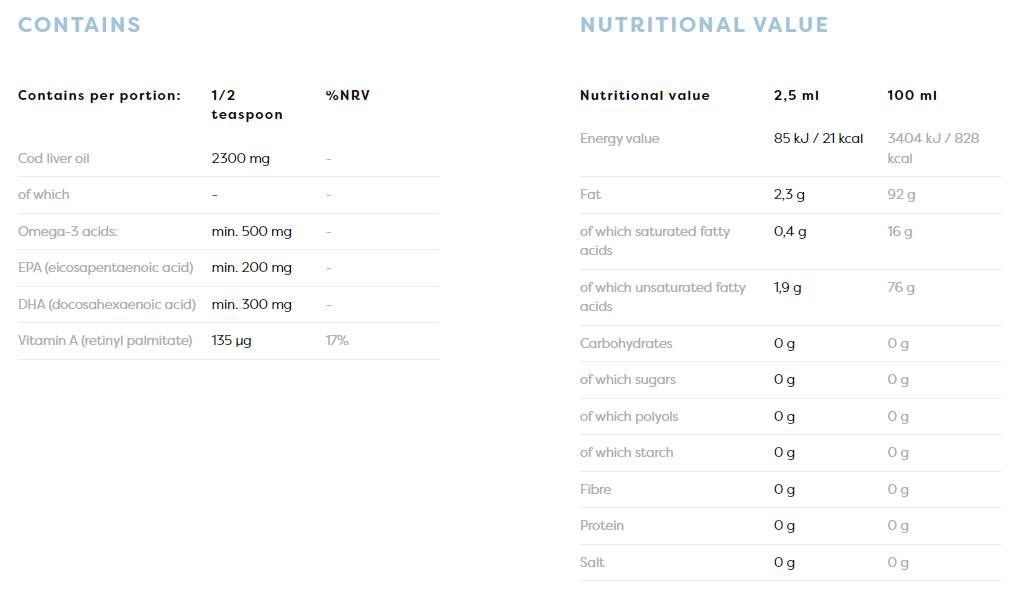 Естественият концетрат от рибено масло в този продукт е специално контролиран за наличие на опасни елементи като тежки метали и живак.