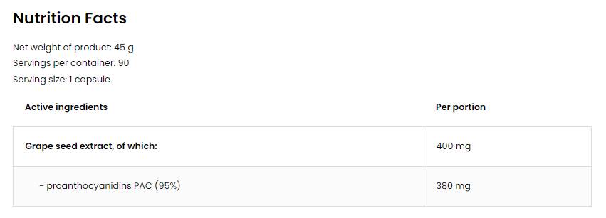 Научни изследвания показват, че проантоцианидините в екстракта от гроздови семена могат да подобрят кръвообращението и да укрепят капилярите, което е от съществено значение за здравето на сърцето. Също така, антиоксидантните свойства на продукта могат да играят важна роля в предпазването на кожата от увреждане и преждевременно стареене.