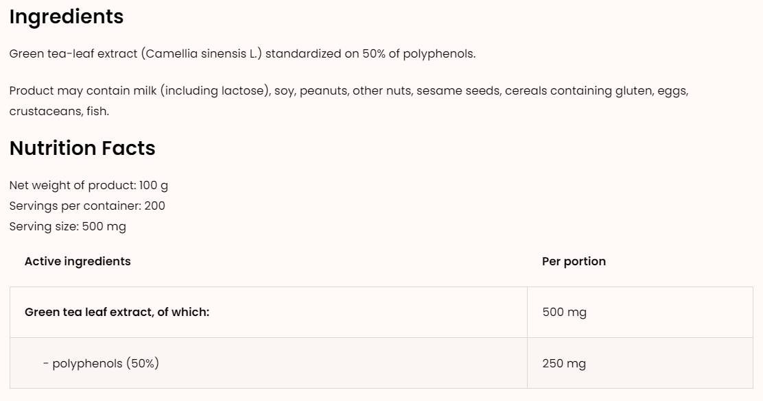 Екстрактът от зелено чай е мощен натурален продукт, известен със своите многобройни ползи за здравето. Той съдържа високи нива на катехини, които допринасят за увеличаване на метаболизма и насърчават изгарянето на мазнини. Освен това, зеленият чай е богат на антиоксиданти, които помагат за предотвратяване на клетъчните увреждания и стареенето. Изследвания показват, че редовният прием на екстракт от зелено чай може да подобри енергийния баланс, да увеличи физическата издръжливост и да подкрепи здравето на сърдечно-съдовата система.