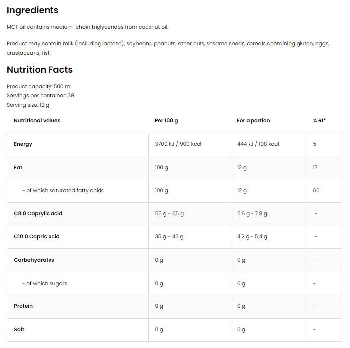 MCT Coconut Oil | Premium Quality C8 + C10 500 мл