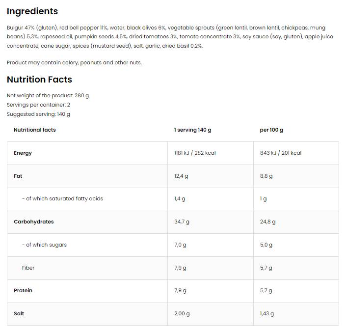 1. Съставът и информацията за алергени могат да се променят от производителя без предварително известие. За най-актуална и точна информация използвайте етикета/опаковката на продукта.