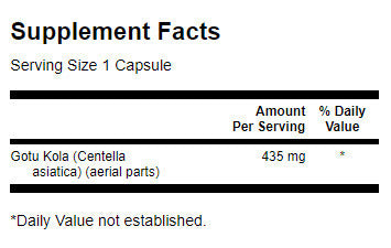 Готу Кола на Swanson е билкова жизнена сила за мозъка и тялото. Изполвана от векове като тоник за паметта от практикуващите аюрведа, тази азиатска билка сега е популярна като естествен начин за поддържане на кръвообращението и като жизнен стимулатор. Всяка капсула осигурява 435 мг чист прах от Готу Кола.