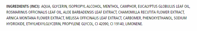 • С масло от ментол, камфор, розмарин и евкалипт и натурални екстракти (лайка, маточина, арника, алое вера)