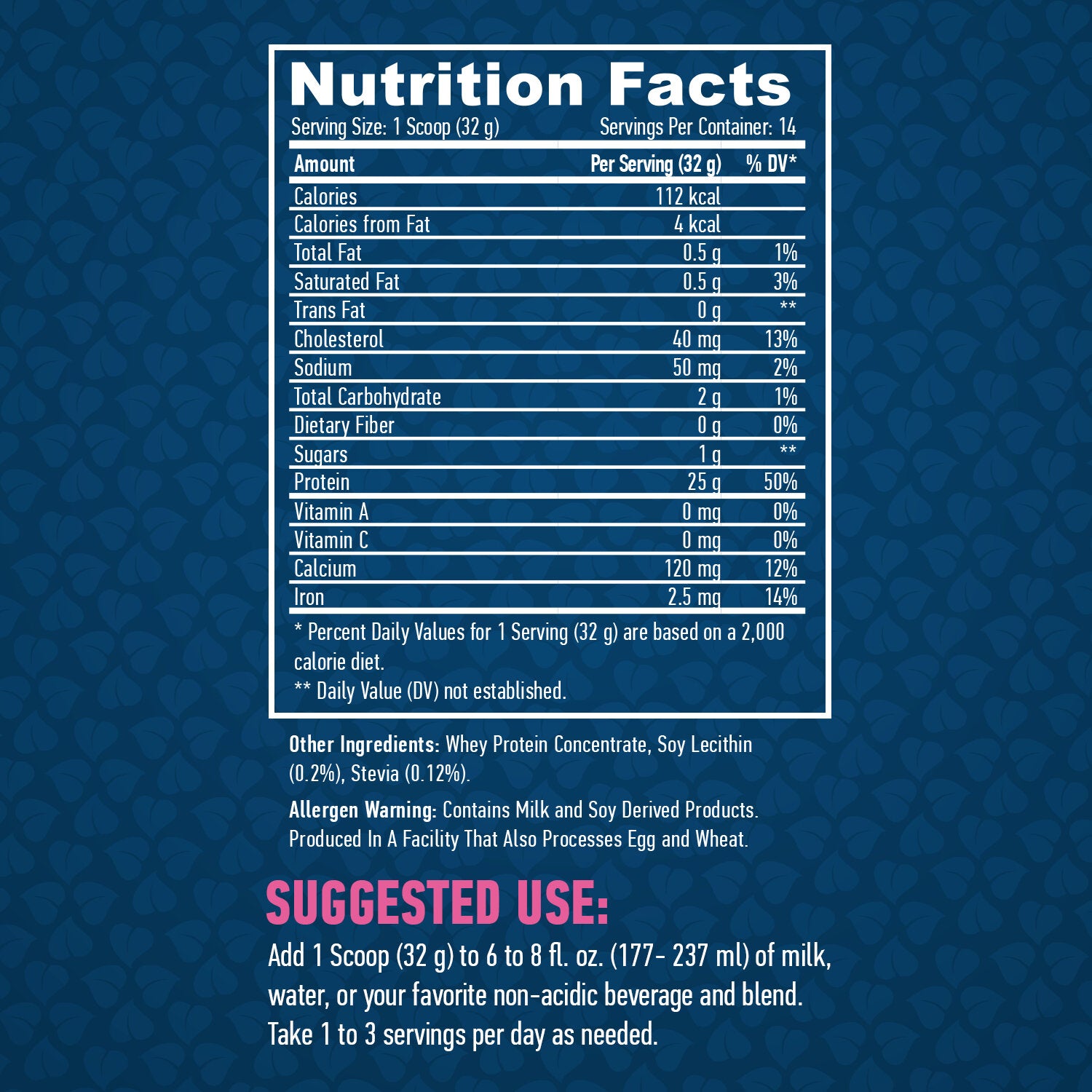 100% Pure All Natural Whey Protein / Stevia - 0.454 kg
