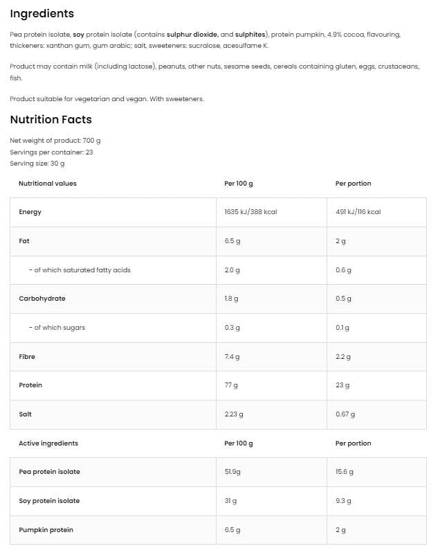 Vegan Protein Blend | Pea + Soy + Pumpkin 700 грама
