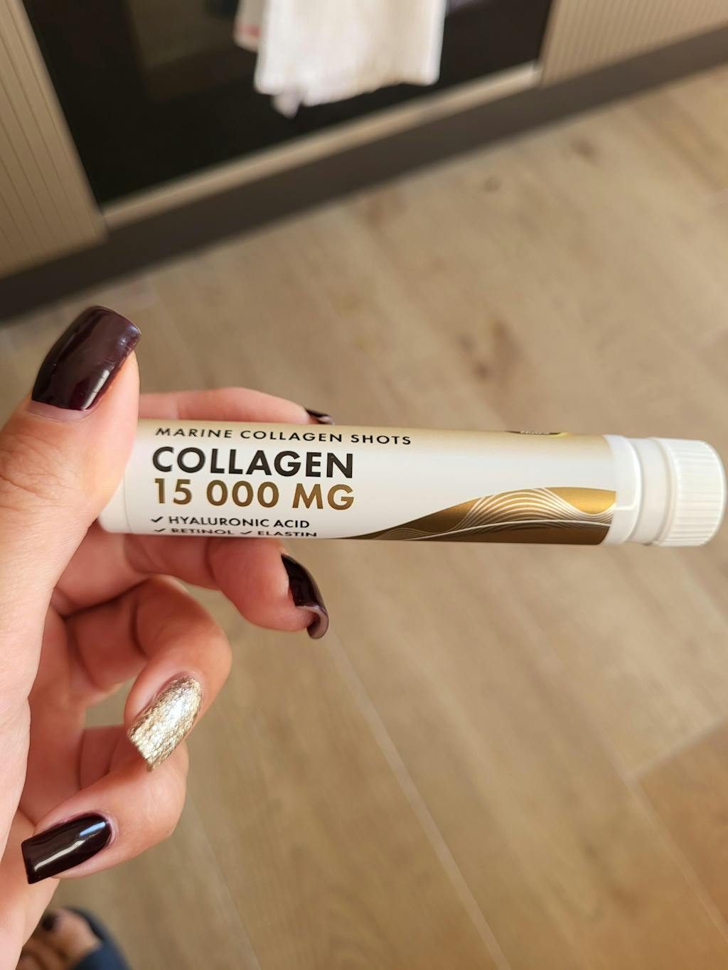 Collagen 15 000 MG On-the-Go е иновативна течна формула в удобни сашета, предназначена за хора, които водят динамичен начин на живот и искат да поддържат млада, сияйна кожа, здрави стави и силна коса – по всяко време и навсякъде. Съдържа 15 000 mg хидролизиран морски колаген, подсилен с ретинол, еластин, хиалуронова киселина и антиоксиданти за цялостна грижа отвътре.