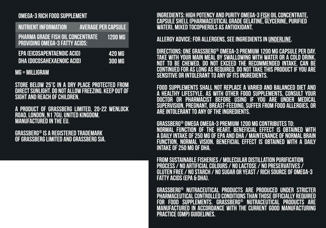 GRASSBERG Omega-3 Premium 1200 mg 90 Softgels