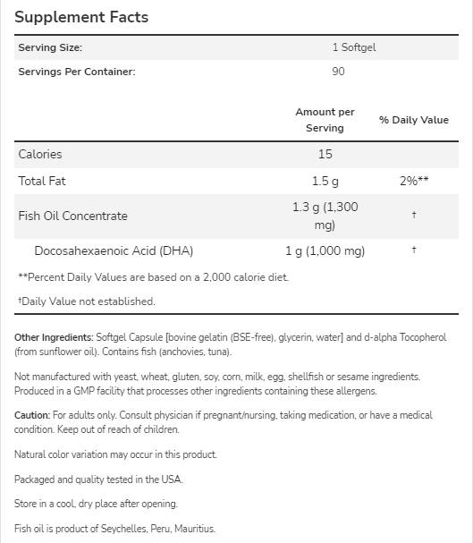 DHA - 1000 | Подкрепа за Мозъка 90 Гел капсули