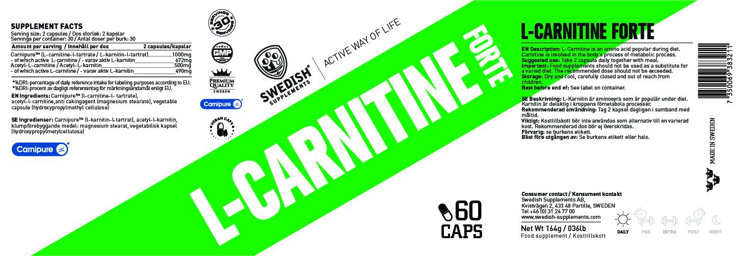Swedish L-Carnitine Forte / Carnipure® + Acetyl е уникален продукт, който комбинира 2-те най-качествени и добре усвоими форми на л-карнитин.