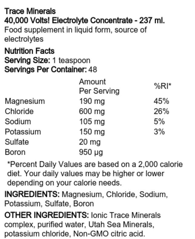 Открийте новото ниво на енергия и възстановяване с 40,000 Volts! Electrolyte Concentrate! Тази уникална формула е проектирана да поддържа вашата атлетична производителност и да ви осигури необходимите електролити, за да се чувствате жизнени през целия ден. С обем от 237 мл, всеки капка е пълна с полезни минерали, които подобряват спортивните постижения.