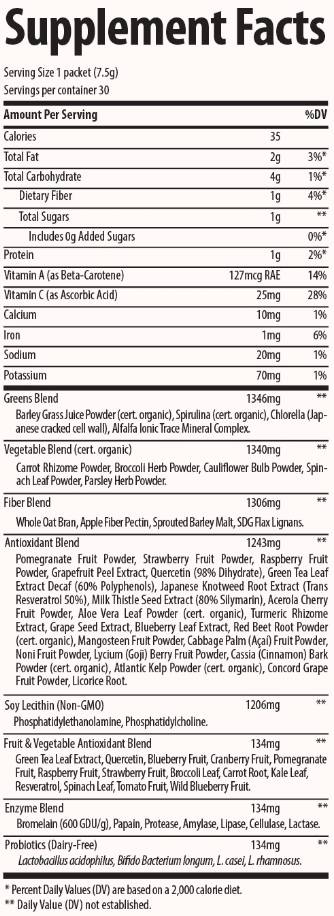 Открийте Greens Pak - 30 Пакета, вашият идеален съюзник в света на фито-нутриентните добавки. Тази вкусна и лесна за смесване формула предлага богатство от зелени храни, включваща супер храни, антиоксиданти, зеленчуци, ензими, пробиотици и растителни екстракти. С Greens Pak можете да сте сигурни, че давате на тялото си необходимите нутриенти, за да поддържате енергията и здравето си на високо ниво.