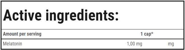 СЪСТАВ: малтодекстрин; обвивка на капсулата (желатин; цвят – титанов диоксид); средство против слепване - магнезиеви соли на мастни киселини; мелатонин (0,2%).