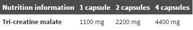 TCM 1100 Mega Caps съдържа висококачествен креатин малат, оптимизиран за бързо усвояване и стабилност в стомаха. Комбинацията от креатин и молекула малат цели постигането на стабилна и устойчива форма на креатина с по-силен анаболен ефект, което допринася за подобрена мускулна работа и възстановяване. Формулата е изключително стабилна и устойчивa в киселата среда на храносмилателния тракт, което улеснява доставянето до мускулните клетки.