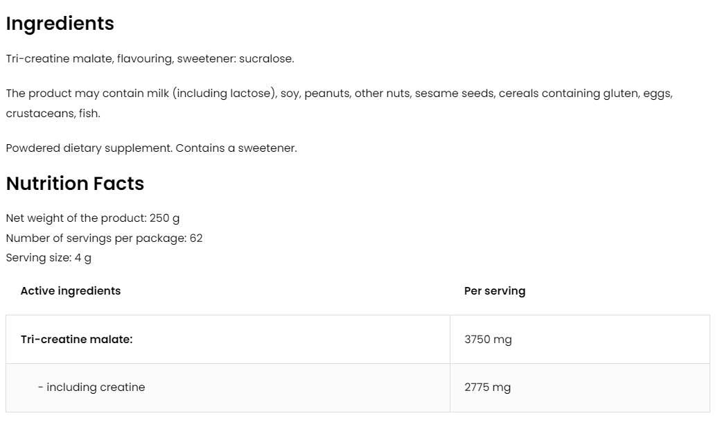 OstroVit Supreme Pure Tri Cretine Malat е нова форма на Креатин Монохидрат молекули са прикрепени Ябълчна киселина. Креатинът се съдържа в червеното месо, но трябва да изядете огромни количества, затова суплементирането с тази хранителна добавка е отличен избор.