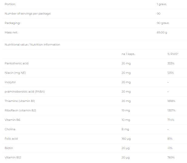 • 100% от дневната нужда – само с една таблетка дневно осигурявате на организма си необходимите витамини от B групата.