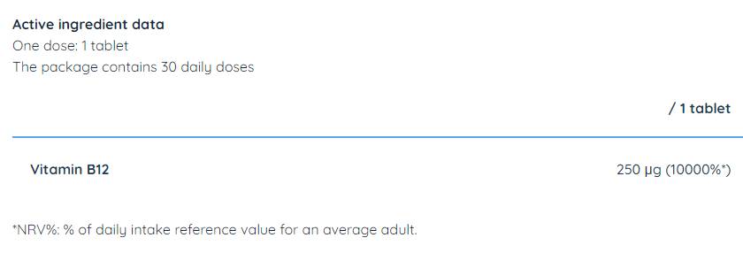 Vitamin B12 250 mcg | Cyancobalamin - 30 Таблетки