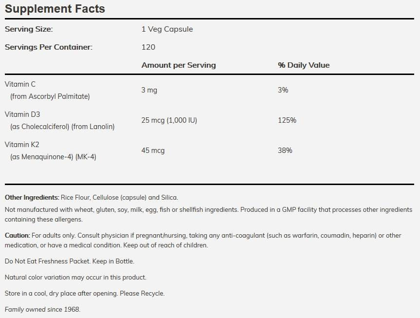 Научни изследвания показват, че витамин D-3 е важен за правилната функция на имунната система, а недостигът му може да доведе до различни заболявания. Витамин K-2 е свързан с намаляване на риска от остеопороза и подобряване на сърдечно-съдовото здраве. Според проучвания, комбинацията от витамин D-3 и K-2 може да доведе до значително подобрение в здравословното състояние на костите и общото благосъстояние.