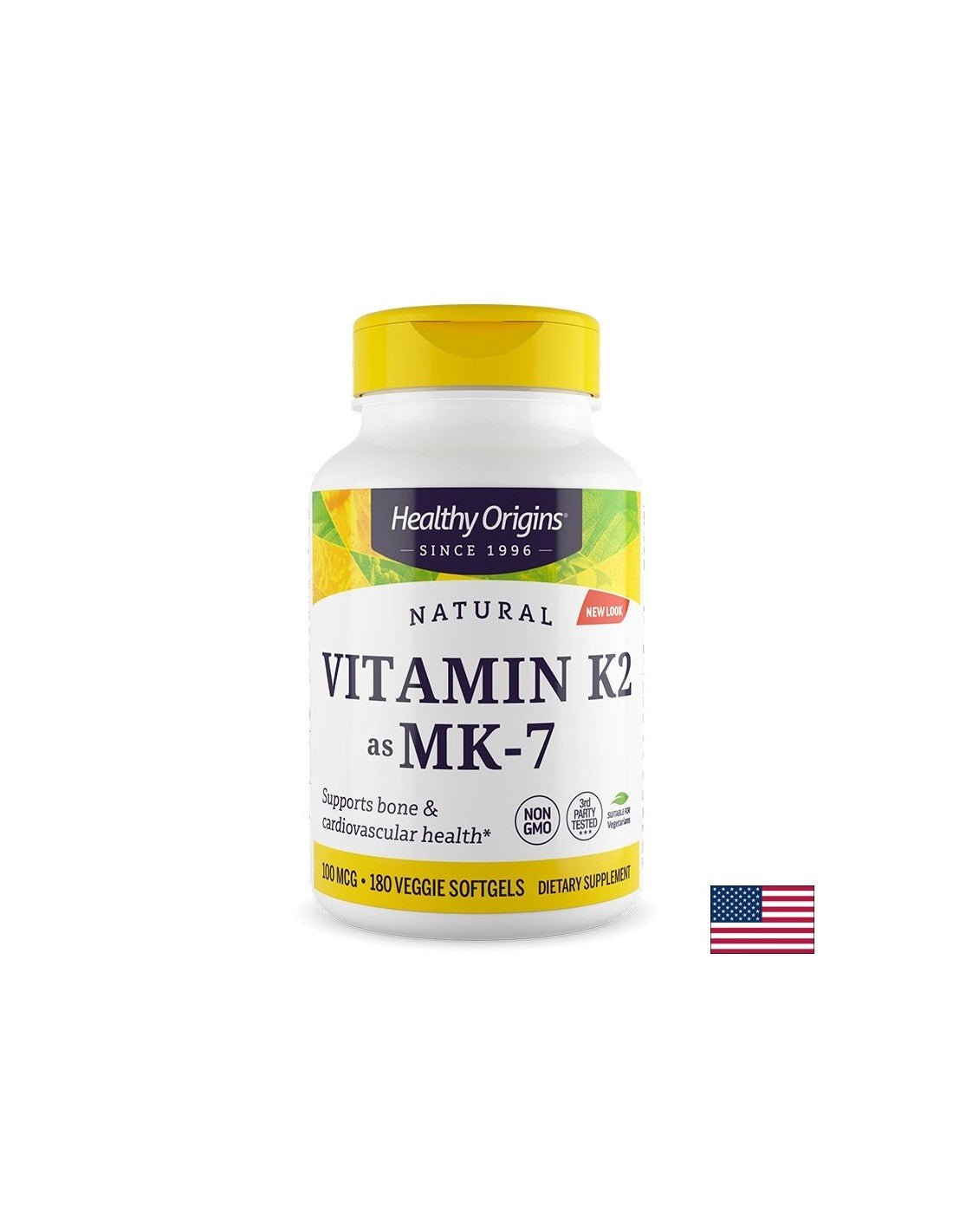 Витамин K2 (менахинон MK-7 ) 100 µg на американската компания Healthy Origins е висококачествен натурален продукт в подкрепа здравето на костите, кръвоносните съдове и сърдечно-съдовата система. Формулата съдържа биологично активната форма менахинон-7 (MK-7), извлечена от ферментирали соеви зърна (нато). Не съдържа ГМО, соя, пшеница, лактоза, яйца, риба, черупчести ядки, изкуствени оцветители, консерванти и аромати.