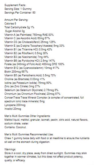 Men's Multi Gummies - 60 желирани бонбони от Trace Minerals е иновативна хранителна добавка, специално създадена за мъже, която предлага витамини за мъже в удобна и вкусна форма на дъвчащи бонбони. Тази формула е обогатена с важни витамини и минерали, които подкрепят енергийните нива, имунната система и здравето на сърцето, осигурявайки необходимата подкрепа за активен начин на живот.