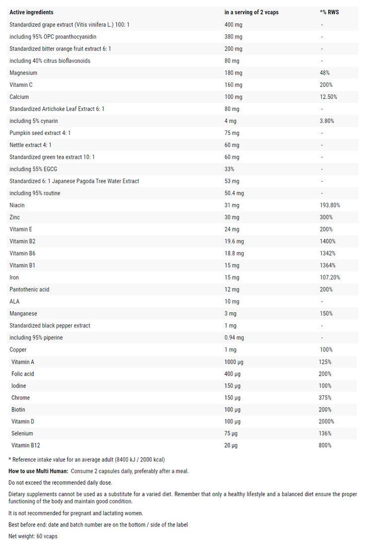 с Multi Human получавате наистина висока доза активни съставки с отлично качество. Нещо повече, благодарение на уникалната формула