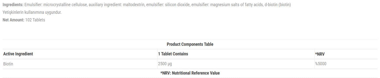 Biotin 2500 mcg - 90 Таблетки