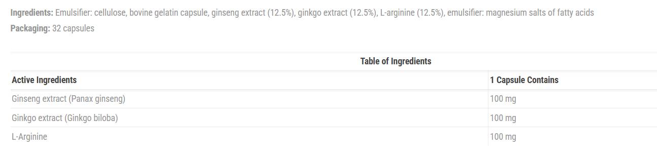 Ginseng Ginkgo Biloba L-Arginine - 32 капсули