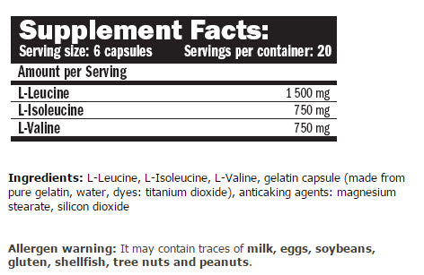 Ефектите включват ускорено възстановяване, поддържане на анаболните процеси и насърчаване на чистия мускулен растеж. Л-левцинът подпомага окисляването на мастни киселини след изразходване на гликогена, което може да помогне за изгарянето на подкожни мазнини и повишаване на енергията по време на тренировка. Най-удачно е да се приема около тренировката, а в нетренировъчни дни – сутрин след сън. Опаковката съдържа 58 дози.