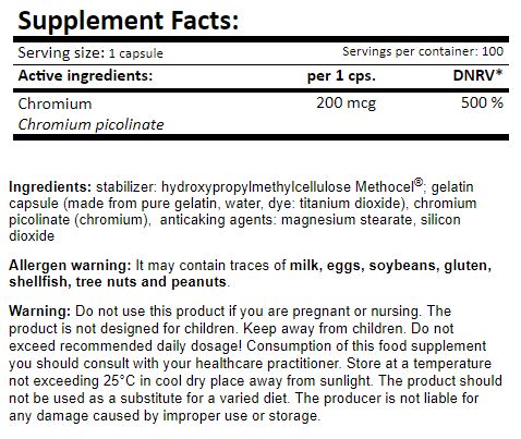 Хромът е минерал, който може да бъде открит в много храни. Той играе основна роля в метаболизма на хранителните вещества чрез въздействието си върху хормона инсулин. Хром пиколинат е форма, често срещана в хранителните добавки. За хората с диабет, хранителните добавки, съдържащи хром, могат да бъдат ефективни за подобряване на реакцията на организма към инсулин или понижаване на кръвната захар. Хром пиколинат доказано намалява чувството на глад и създава чувство за ситост.