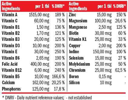 Всяка таблетка съдържа широк спектър от незаменими витамини и минерали, които оказват благотворно влияние върху общото здраве и функциите на тялото. Формулата е особено подходяща за хора с натоварен физически и умствен режим, като Daily One поддържа основните функции на метаболизма, подпомага физическата и умствената активност, помага за предотвратяване на умората и ускорява възстановяването след натоварване.
