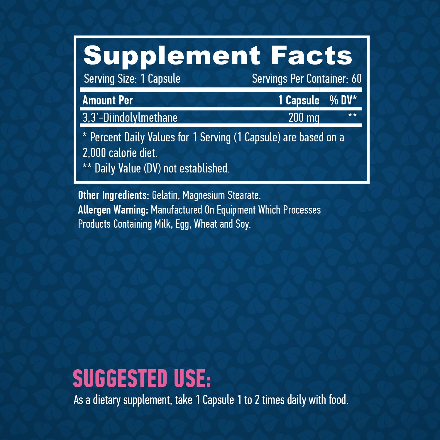 DIM не е хормон, но има действие подобно на естроген. Той се среща естествено в зеленчуци като зеле, броколи, брюкселско зеле, карфиол и ряпа. Приемът на DIM подпомага нормалното функциониране на естрогеновия метаболизъм и може да намали естрогеновия дисбаланс, който често засяга мъже и жени през средна възраст. Това подпомага поддържането на здравословно ниво на тестостерон при мъжете и общо благосъстояние.