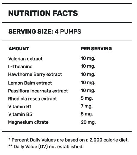 Съставките действат синергично за по-спокойно ментално състояние: екстракт от валериана, L-теанин, екстракт от глог, маточина, пасифлора, родиола (златен корен), витамини B1 и B2 и магнезий. Това подпомага овладяване на нервното напрежение, подобрява съня и общото усещане за баланс през деня.