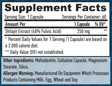 Шилажитът е природен адаптоген, богат на минерали и фулвинова киселина. Продуктът се образува от разграждането на растителни материали през милиони години и често се нарича „черното злато на природата“. Всяка капсула съдържа 250 mg стандартизиран екстракт от шилажит, осигуряващ 40% фулвинова киселина, което подпомага производството на клетъчна енергия и общото благосъстояние.