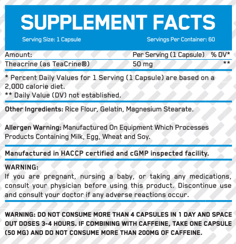Teacrine от Everbuild Nutrition е революционна хранителна добавка, която повишава нивата на енергия без енергиен срив благодарение на патентованата формула TeaCrine.