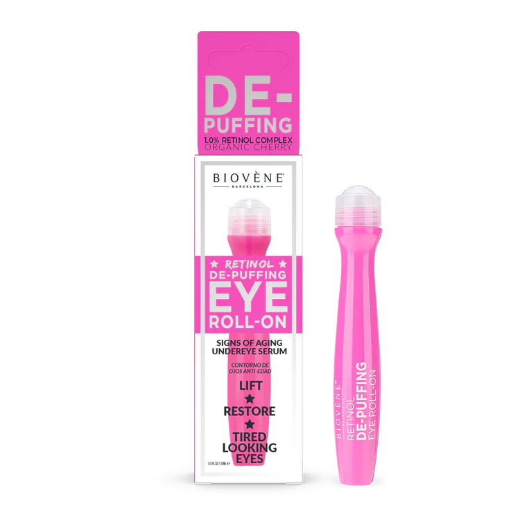 Серум за очен контур с ролка, който подува и успокоява, съдържащ анти-ейджинг Ретинол и Органична череша. Подходящ за всички типове кожа, засегнати от бръчки около очите, тъмни кръгове и подуване. Съхранявайте в хладилника за допълнителен охлаждащ ефект.