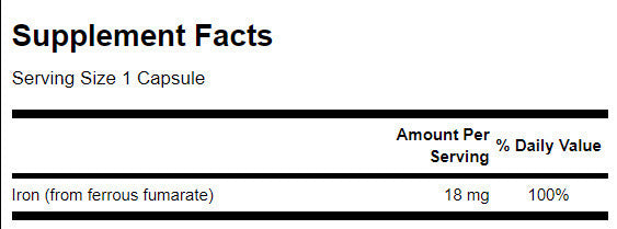 Iron (Ferrous Fumarate) 18 mg - 60 capsules