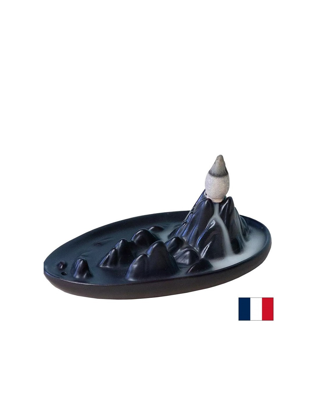 Recommendations for use : Light the tip of the cone, extinguish the flame, place the back-burning cone on top of the stand, wait 5 minutes for it to burn and watch the smoke flow down the sides of the "mountains", forming a smoke fountain.