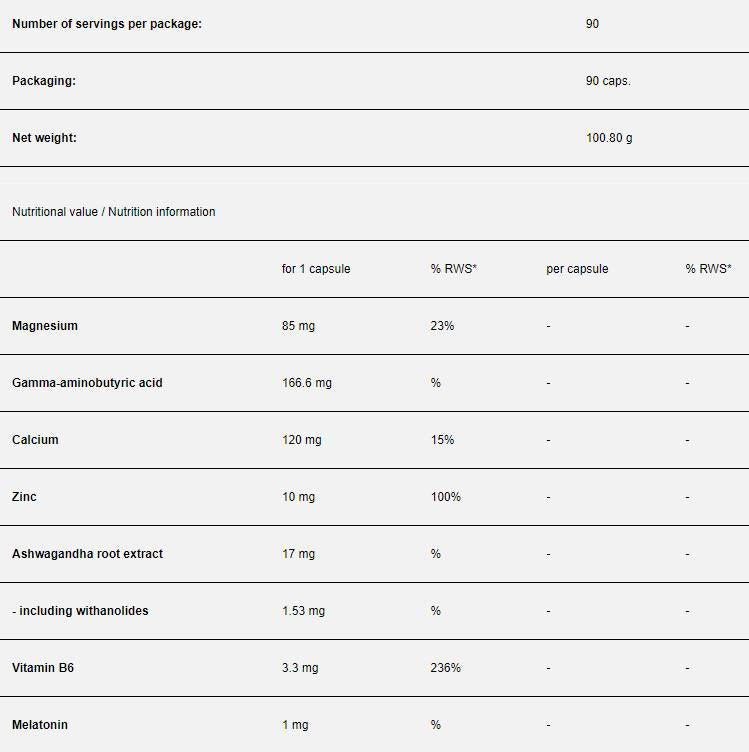 Sport Definition SLEEP AID is a high-quality formula based on the best active ingredients, in the right doses to ensure optimal effect. By including the supplement in your regimen, you will not only improve the quality of your sleep, but also affect your overall health. Using the synergy between zinc, magnesium and vitamin B6, Sleep Aid increases your own testosterone production. The main goal of the supplement, namely deep and sound sleep, is achieved with the presence of gamma-aminobutyric acid (GABA) and the right amount of melatonin.