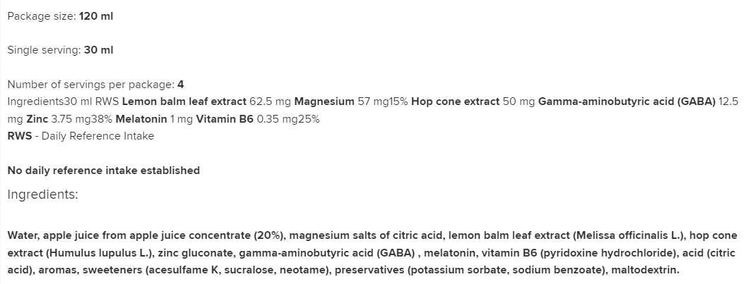 Ingredients: zinc - citrate
