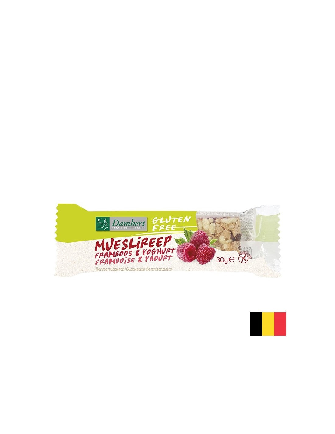 Gluten Free Mueslireep framboos and yoghurt / Muesli bar with raspberries and yoghurt (gluten-free), 30 grams is a healthy product from the Belgian company Damhert. We present to you a refined muesli bar with raspberries and yoghurt, specially created for lovers of a healthy lifestyle. Its ingredients are gluten-free, making it ideal for people with gluten sensitivity.