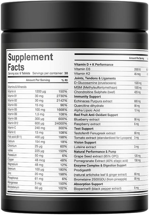 This multivitamin formula is designed to meet the needs of an active lifestyle, providing everything you need for your health in one product. It includes selected ingredients that work synergistically to achieve maximum results.