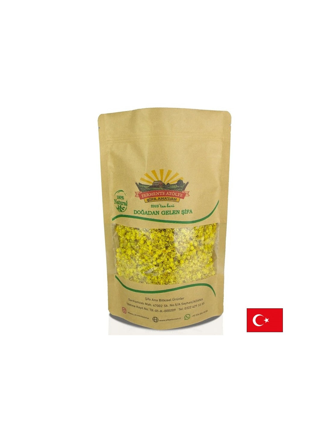100% натурални изсушени цветове от Helichrysum italicum – билка, известна с детоксикиращите си и антиоксидантни свойства. Подходяща за приготвяне на чай и подкрепа на черния дроб и храносмилането